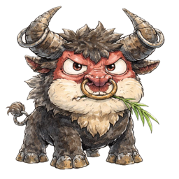 一本足の牛。バランス悪い。よく転ぶ。雷落ちる。